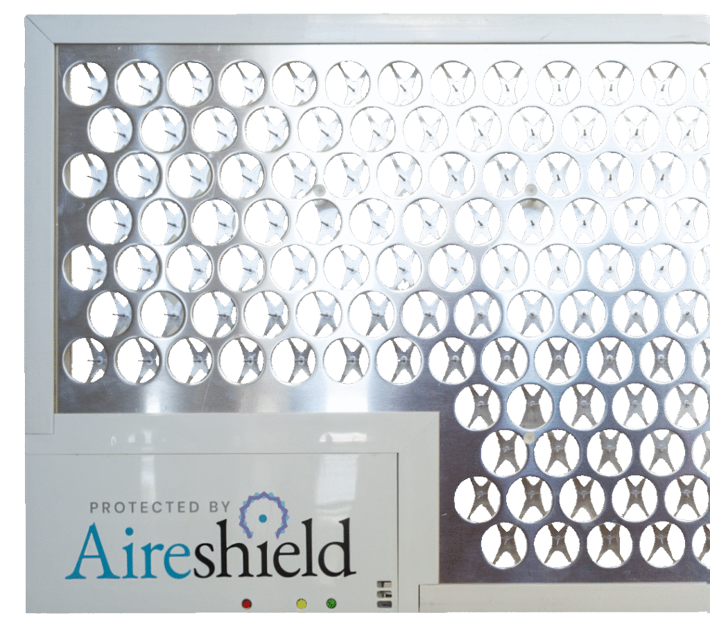 Aireshield upgrades your air with a simple, slide-in filter—neutralizing germs, allergens, and smoke inside your HVAC. No major retrofits. Washable, long-lasting, and made for peace of mind.